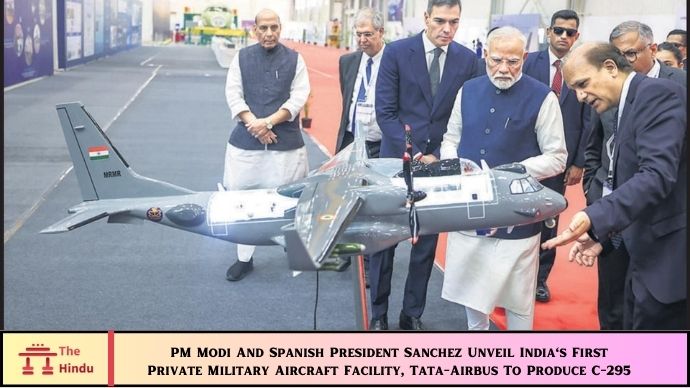 In a landmark moment for India’s defense sector, Prime Minister Narendra Modi and Spanish President Pedro Sanchez have jointly unveiled India’s first private military aircraft manufacturing facility. This state-of-the-art facility, built by Tata-Airbus, will be responsible for producing the C-295 transport aircraft for the Indian Air Force (IAF), marking a significant milestone in India’s defense manufacturing capabilities.